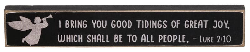 Our Nativity Verse Mini Stick is sold in 3 assorted designs and reads, "The Greatest Gift," "Glory to the Newborn King," or "True Story" alongside nativity, star, or angel graphics. They are perfect for farmhouse Christmas decorating. Each wooden block has distressed edges and measures 1" high by 6" long by 0.5" thick. Please note: This item features a variety of designs which are priced as a set. You get three blocks in each set.