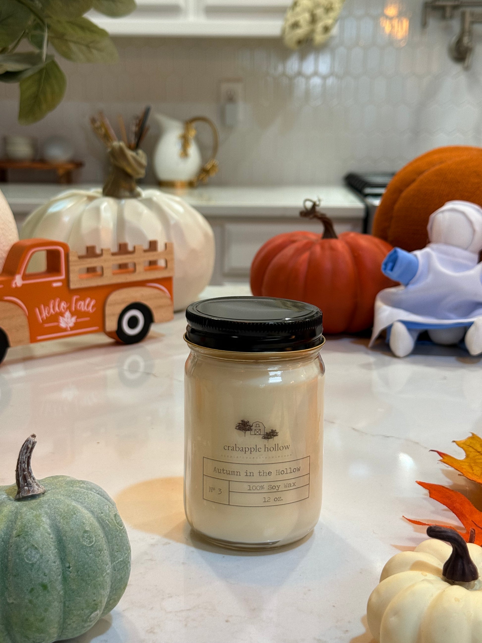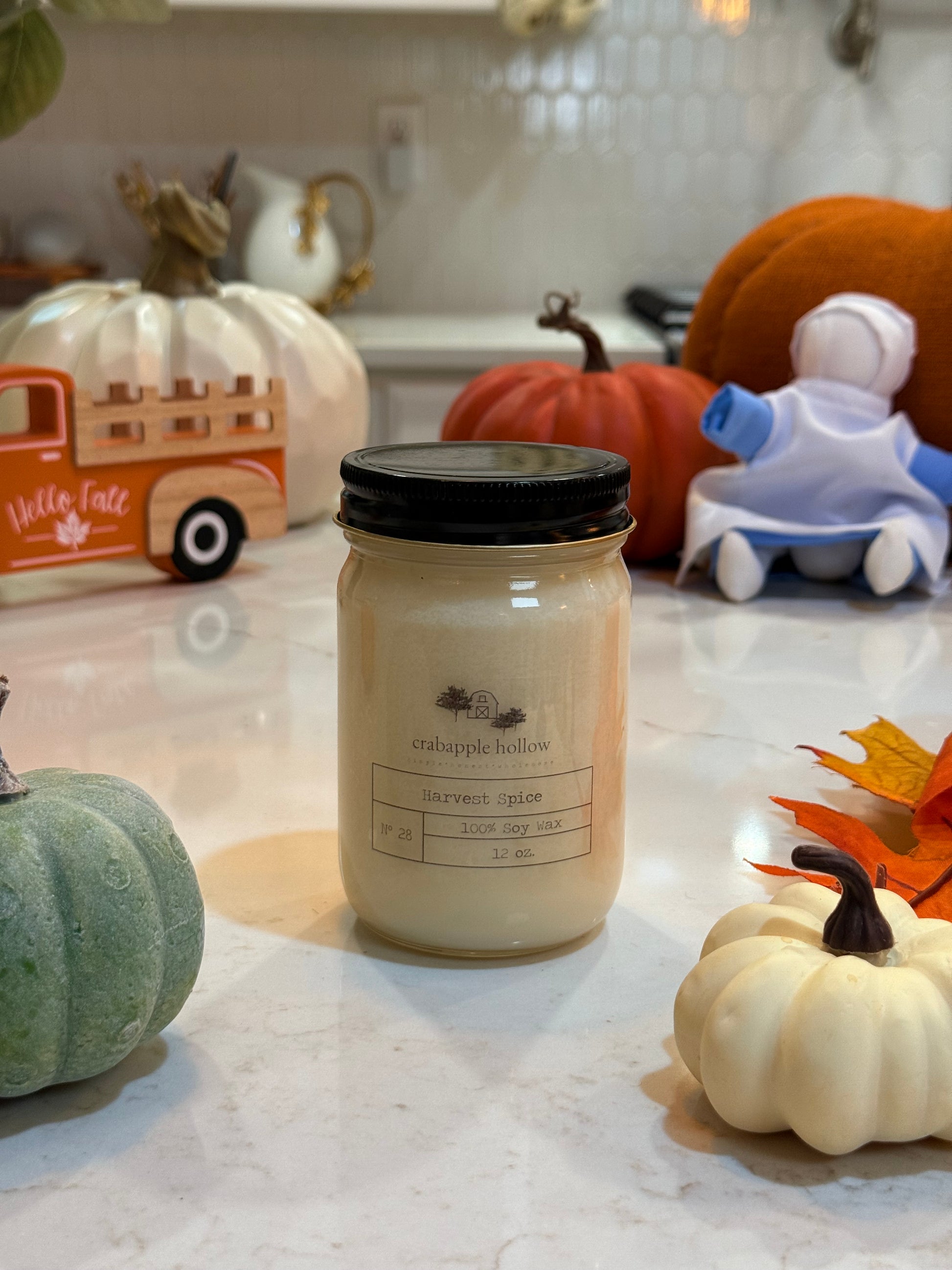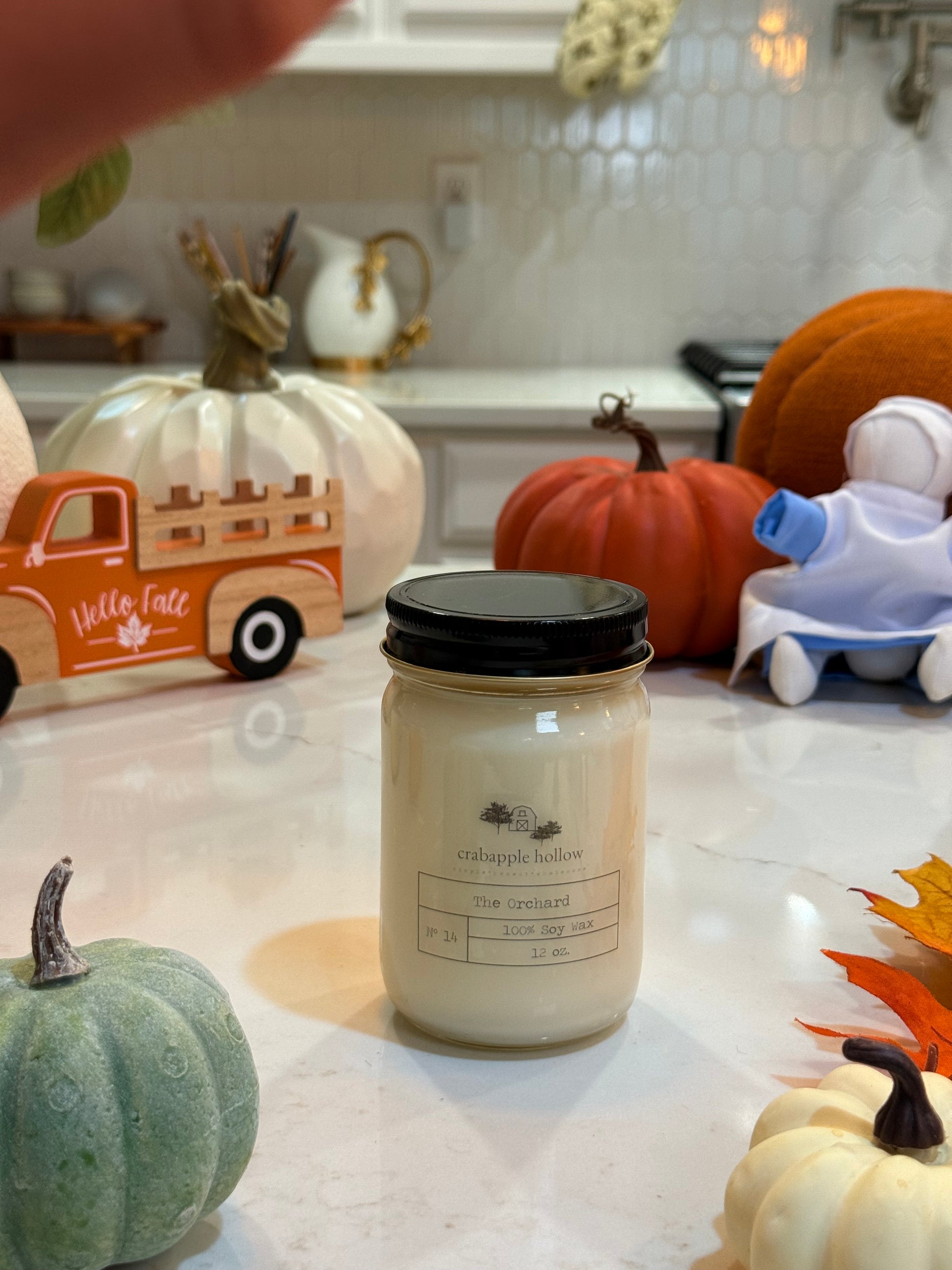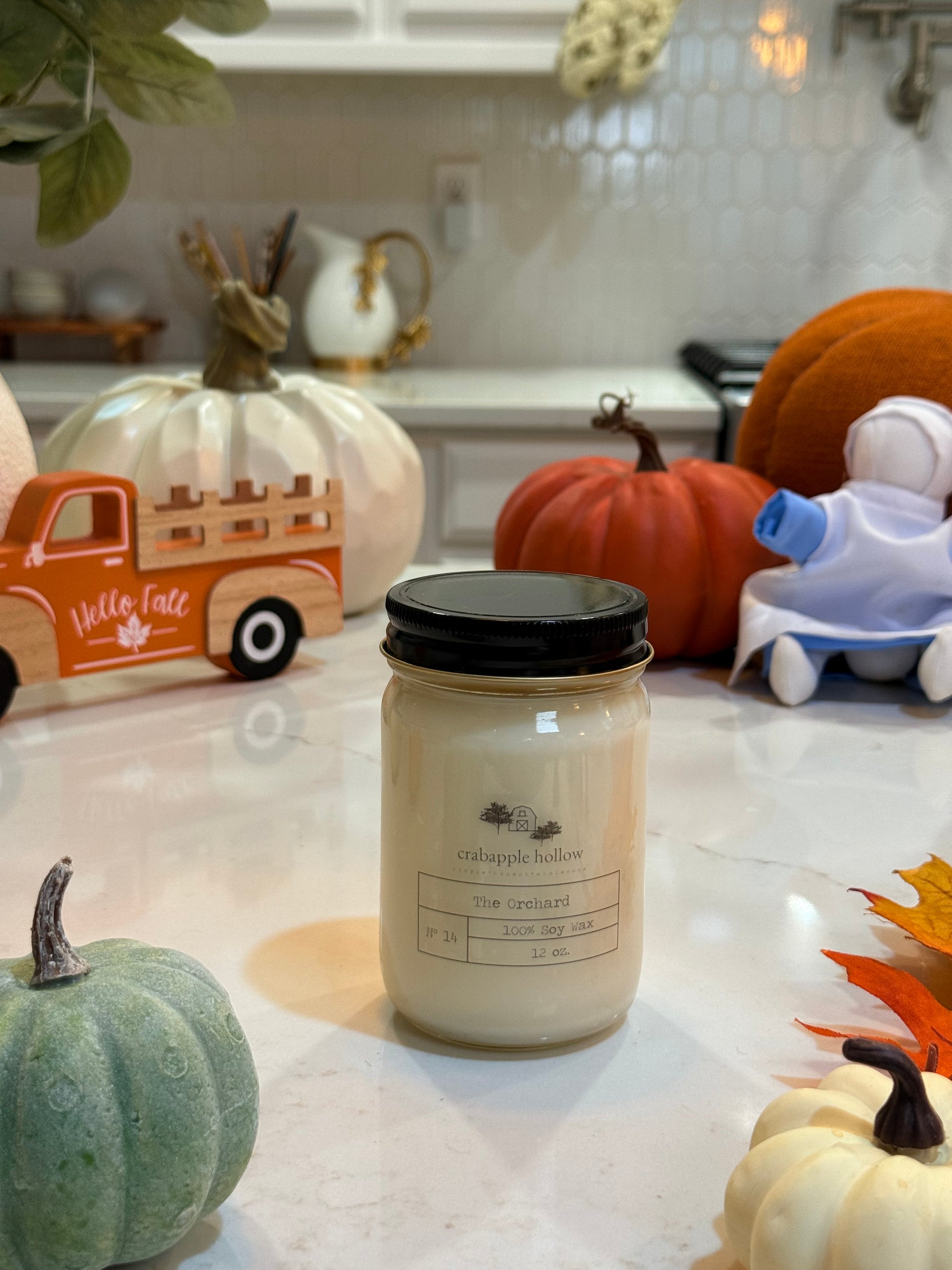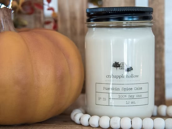 All of Crabapple Hollow candles are hand poured with 100% natural soy wax and fragrance oils, infused with natural essential oils, that are all free from carcinogens, reproductive toxins, and other potentially hazardous chemicals often found in fragrance. 12 oz.